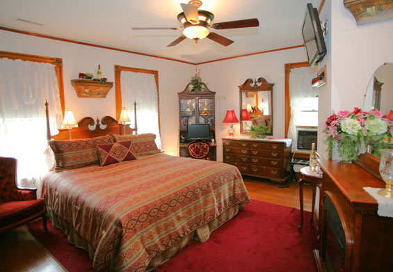 The Lord and Lady room is spacious and bright. The Lord and Lady room has a 32" flat screen TV and DVDs, Private updated bath/shower, king bed, three large windows for the morning sun, refrigerator, secretary desk for computer and writing, and ceiling fan. Lord and Lady guests will feel charmed in this turn of the century room.